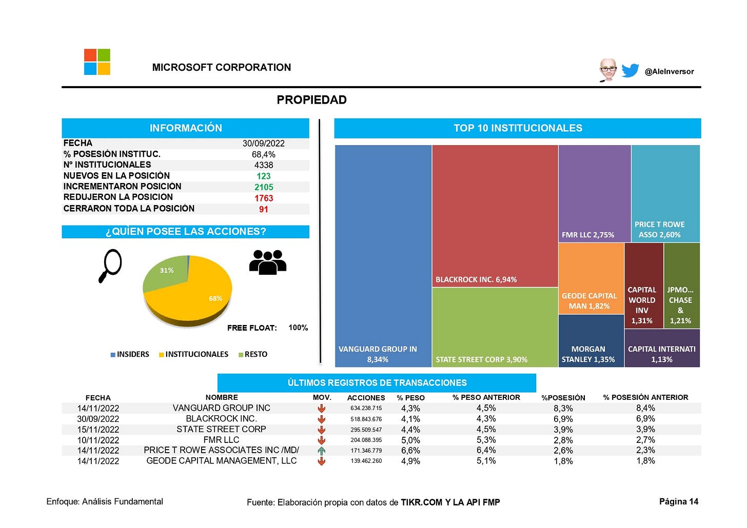 ANALISTAS Y MOVIMIENTOS PRINCIPALES ACCIONISTAS
