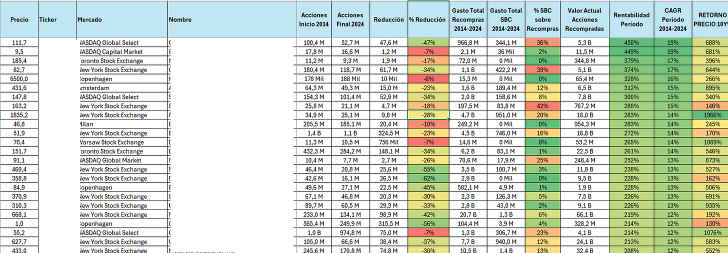 Si te interesa ver qué empresas realmente lo hacen bien con sus recompras y cuáles están solo maquillando… este archivo te puede ahorrar mucho tiempo y dinero.