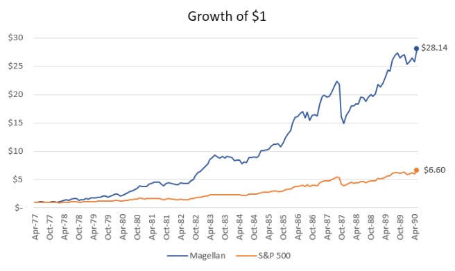 El fondo de P. Lynch solo estuvo abierto a inversores 9 años, y que en éstos obtuvo rentabilidades por encima del 20%, los 4 primeros años fue privado ya que fue un vehículo de inversión de la familia fundadora de la gestora Fidelity, empezando con un capital muy pequeño.